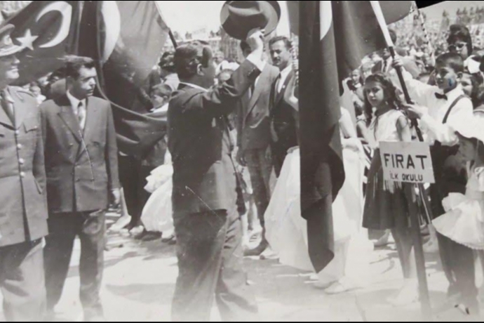 Malatya’da 1960 yılında düzenlenen 23 Nisan Ulusal Egemenlik ve Çocuk Bayramı kutlamaları, dönemin renkli görüntülerine sahne oldu. Şehir merkezinde gerçekleştirilen resmi törende, Malatya Valisi Cezmi Kartay da hazır bulundu. Tören alanında öğrenciler, ellerinde Türk bayraklarıyla kortej halinde yürüyüş yaparken, dönemin sevilen eğitim kurumlarından Fırat İlkokulu öğrencileri de etkinliklerde yer aldı. Fotoğrafta, okul öğrencilerinin taşıdığı “Fırat İlkokulu” yazılı tabela dikkat çekiyor. Vatandaşların yoğun ilgi gösterdiği kutlamalarda çocukların heyecanı ve bayram sevinci yüzlere yansıdı. Resmi görevliler, öğretmenler ve ailelerin katılımıyla gerçekleşen program, Malatya’nın hafızasında yer eden anlamlı günlerden biri olarak kayıtlara geçti. Arşiv niteliği taşıyan bu kare, 1960’lı yılların Malatya’sında milli bayramların nasıl büyük bir coşku ve birlik ruhu içinde kutlandığını bir kez daha gözler önüne seriyor.